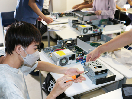 SCCでは、ソフトウェアだけではなく、ハードウェアについても、実習を行っています。