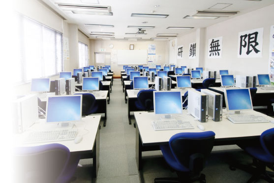マルチメディアへ対応した、Windows10搭載のパソコンを設置したネットワークシステムによる実習室、デザイン学習には欠かせないアップル”Macintosh”の実習室、”Windows11”ベースでネットワークを組んだプログラム開発中心の実習室のほか、3Dプリンター、マルチコプター、講義室・学生ロビーなど充実した施設・設備を完備。